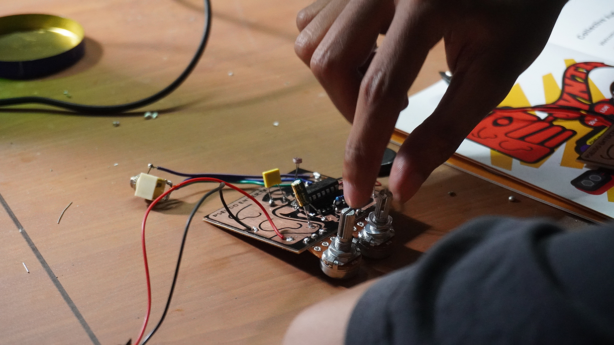 From perceiving to producing—this phase invited participants to engage with sound through hands-on synthesis. The workshop was designed as a structured introduction to DIY electronic instruments, but participants quickly transformed it into a space for collaboration and improvisation.