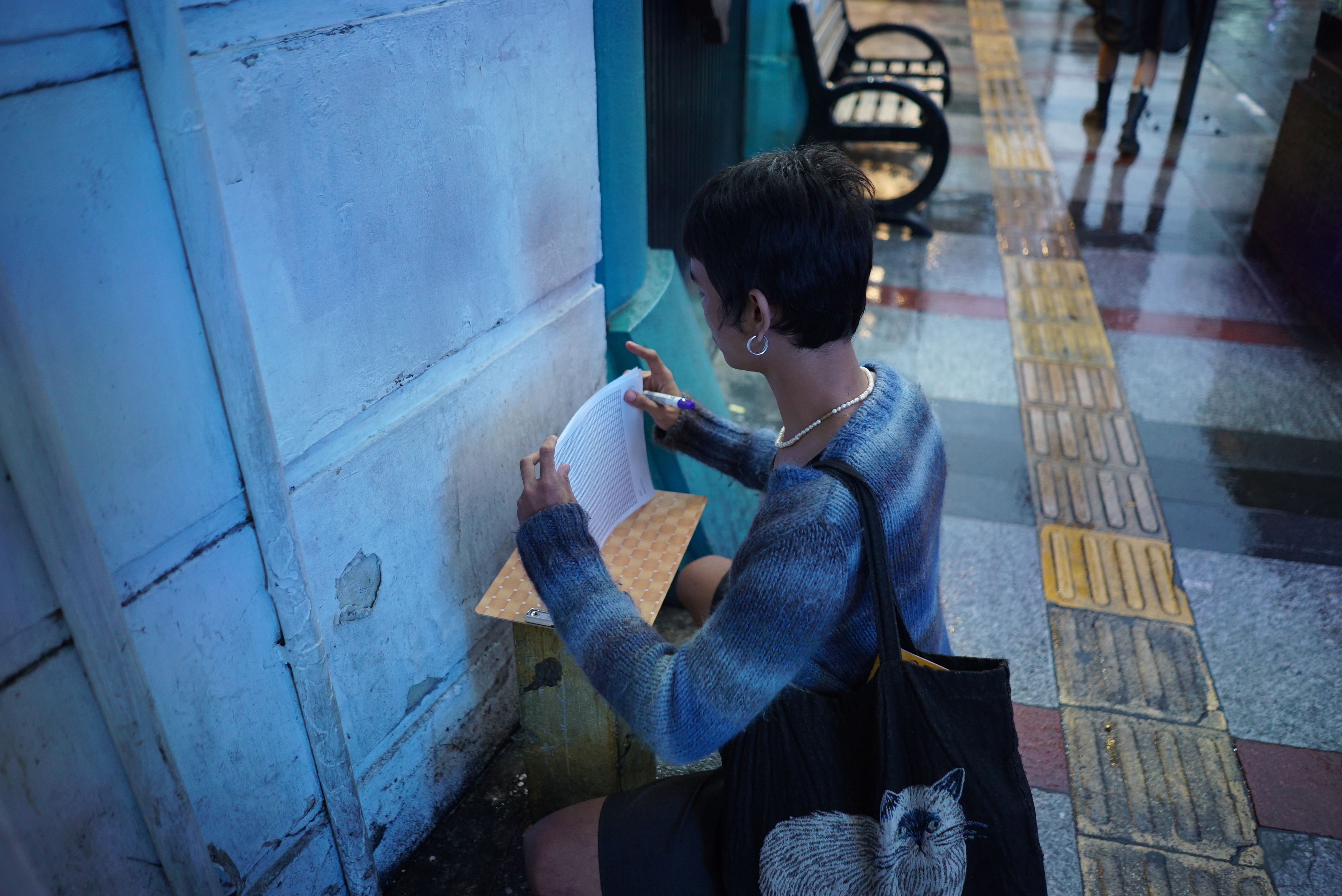 Interestingly, observations extended beyond static elements like tree bark or fabric textures; many were drawn to the movement of people—the fluidity of pedestrian rhythms, the micro-gestures of those pausing, waiting, or weaving through the streets. The interplay between overstimulation and stillness emerged as a key theme. A sudden downpour, for example, momentarily shifted the tempo of the environment, creating an unplanned moment of reflection.