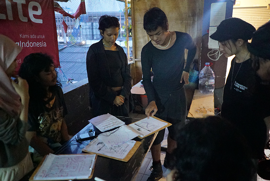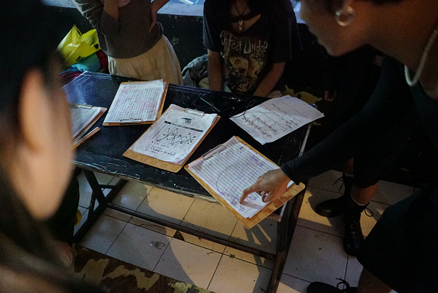 Follow the path. Performers closely trace the drawn lines on their acetate sheets. Let your touch guide the light, let the synths whisper what they sense. This phase is about precision, listening, and feeling the city as it is.