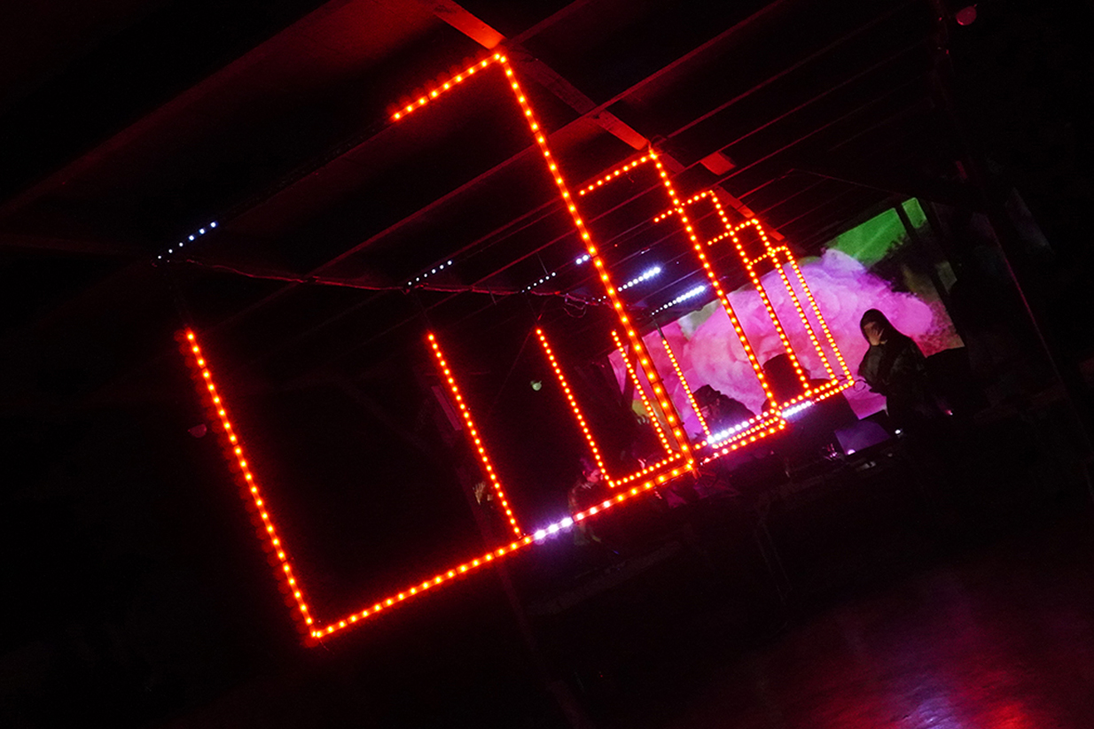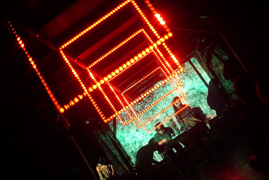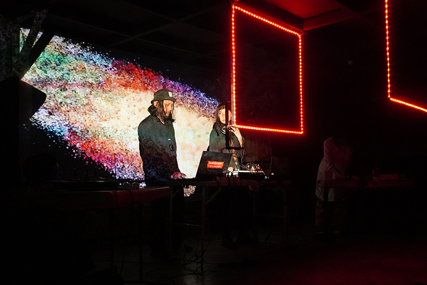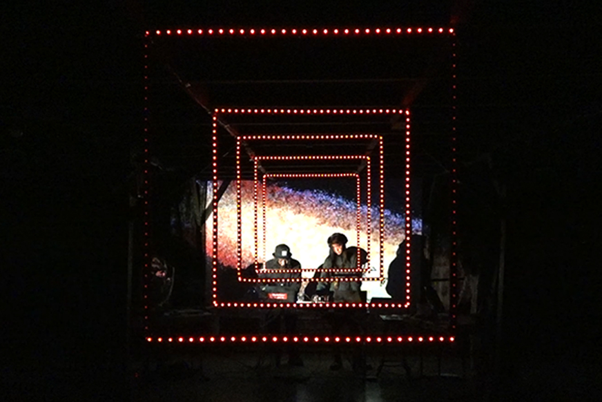 Meanwhile, the environment is part of the composition. Shadows, external light sources, and movement introduce unexpected shifts. Our live digital processors—one on sound mixing & FX, the other on visuals & LED mapping—shape this real-time dialogue, amplifying the city’s hidden textures into an immersive performance.