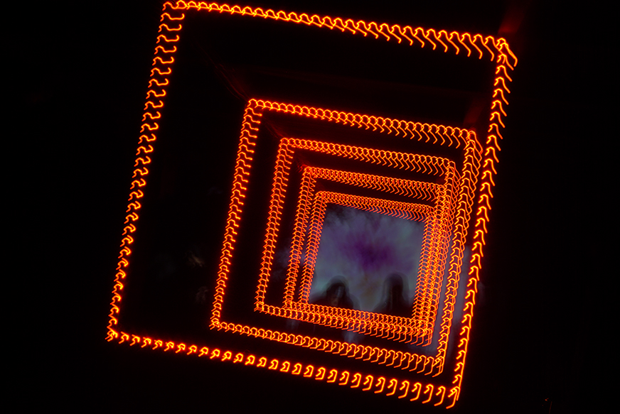 // Visual & LED Mapping – Reacting to performers’ gestures, transforming light distortions into projected visuals.