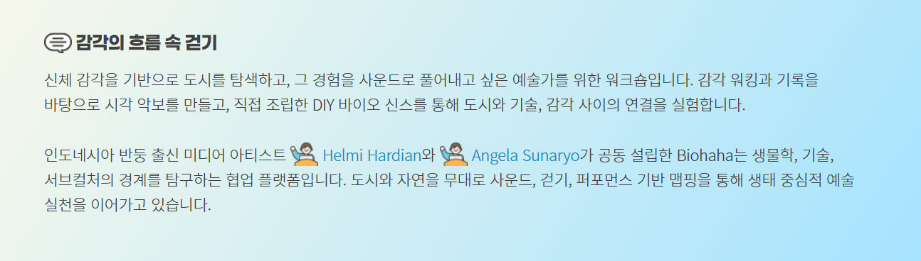 In this first phase, participants moved through the Asia Culture Center area, tracing invisible paths of sound, texture, light, smell, taste, humidity, and rhythm.