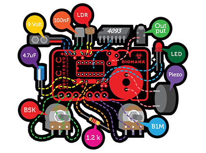 // DIY Bio-Synth Workshop – Participants assemble a light-sensitive synthesizer that converts visual stimuli into sound, creating a tactile and sonic link between perception and the environment.